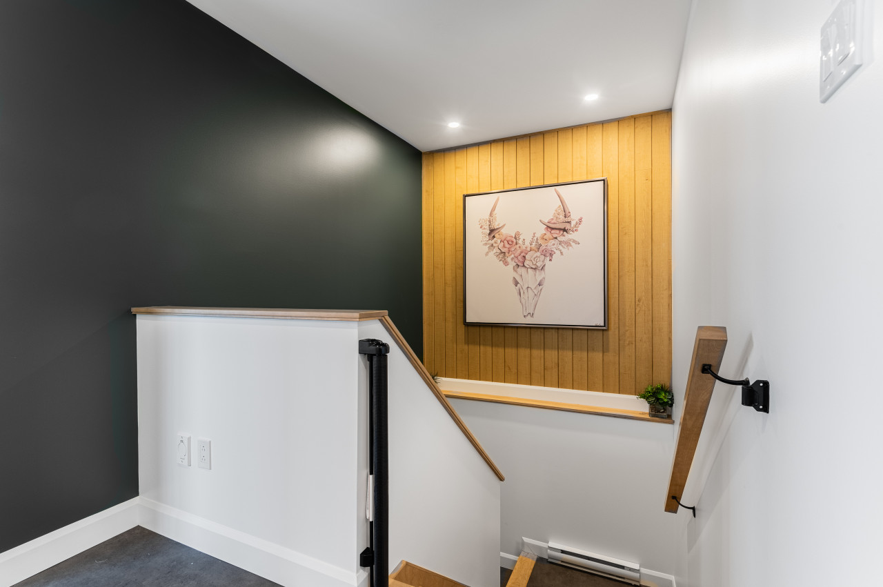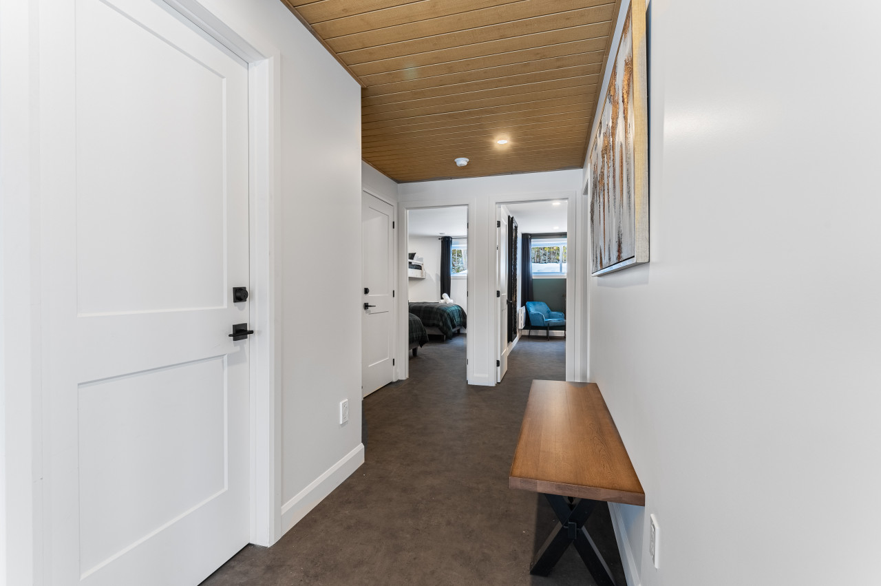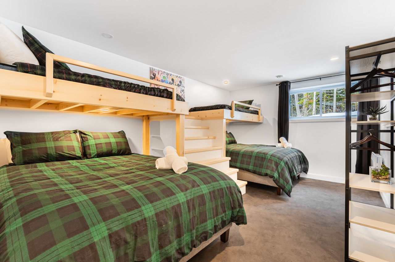 Le chalet comprend 4 chambres et peut accueillir 12 adultes et jusqu’à 14 invités (avec enfants). La première chambre est munie d’un lit king, la deuxième d’une bassinette et d’un lit queen, la troisième d’un lit queen et de deux simples superposés, et la dernière de deux queen et deux simples superposés.